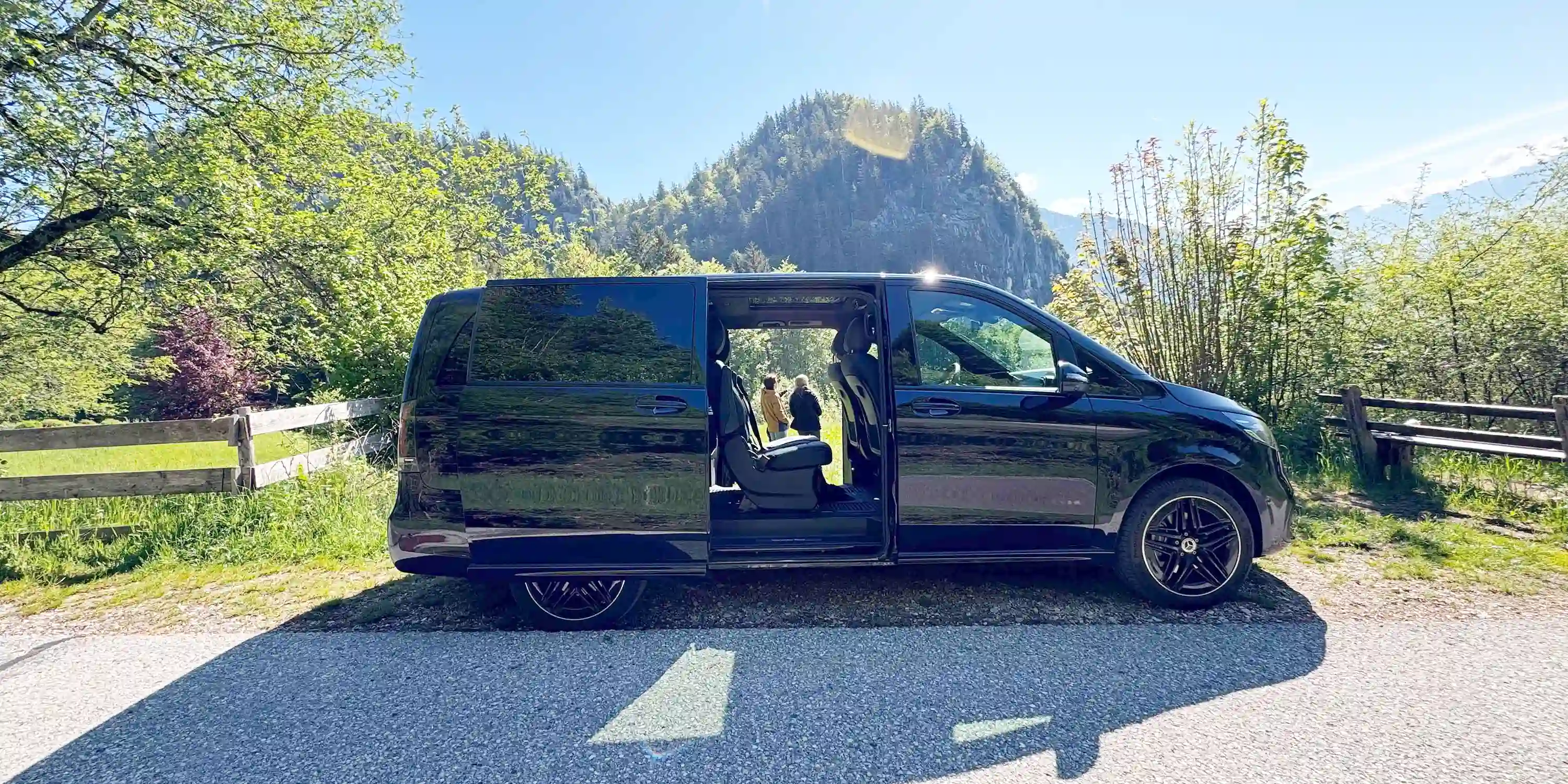 • Luxury Mercedes-Benz van or Audi A6 with A/C